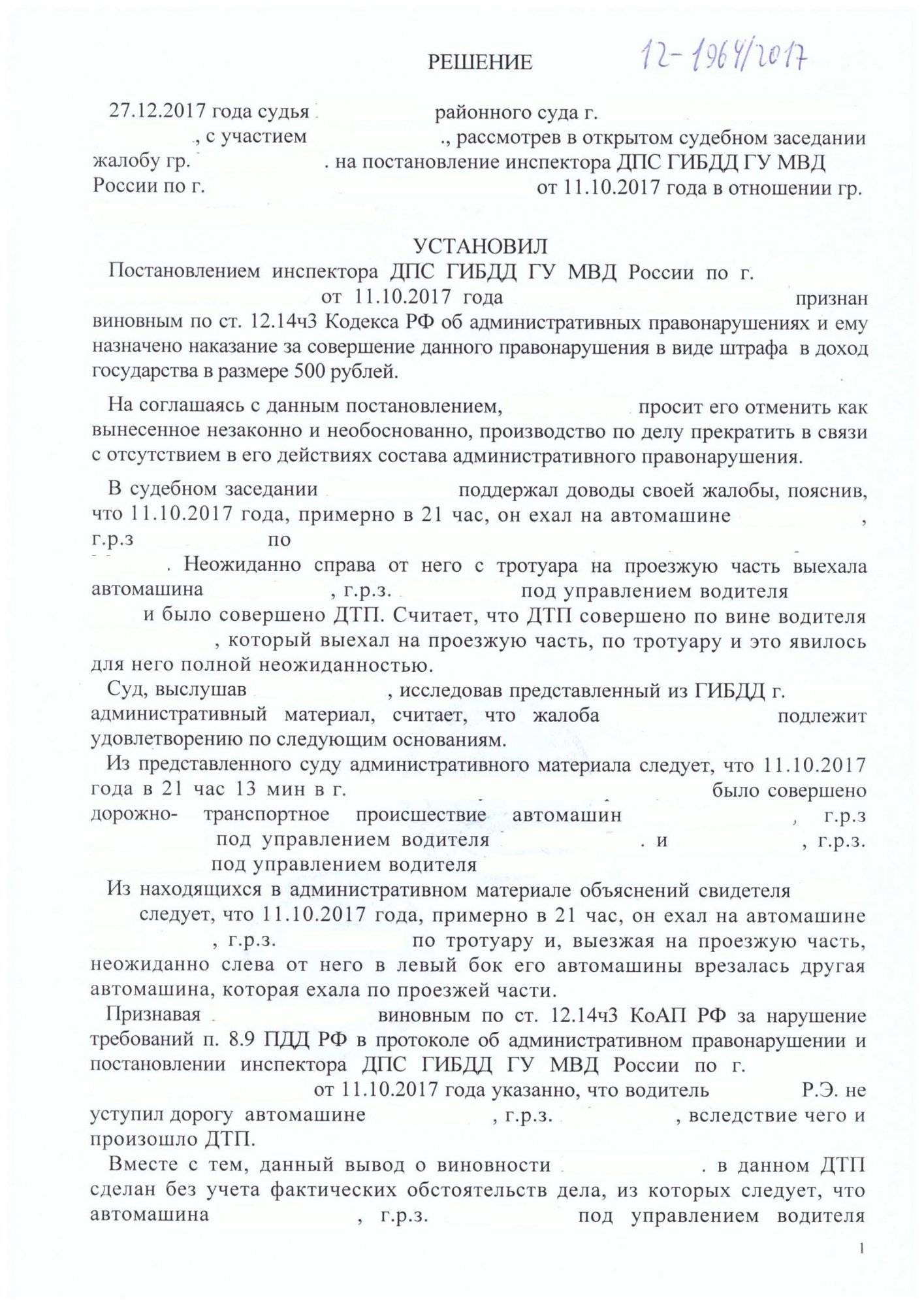 На открытом заседании суда была рассмотрена жалоба участника ДТП на вынесенное постановление инспектором ДПС ГИБДД. Согласно документу, гражданин признается виновным в дорожно-транспортном происшествии с назначением наказания в виде денежного штрафа.